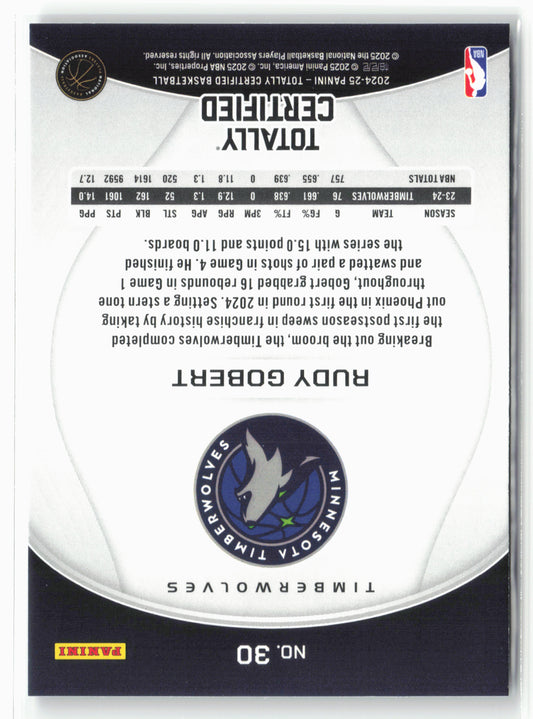 This is a nice example of a 2024-25 Panini Totally Certified #30 Rudy Gobert Mirror Other important information about this card:In 2024 Rudy Gobert played for the Minnesota Timberwolves.Please check...