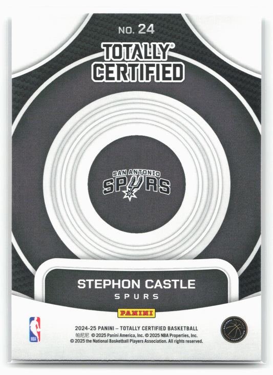 This is a nice example of a 2024-25 Panini Totally Certified #24 Stephon Castle On Target Other important information about this card:18420In 2024 Stephon Castle played for the San Antonio...