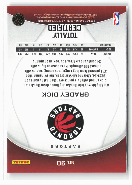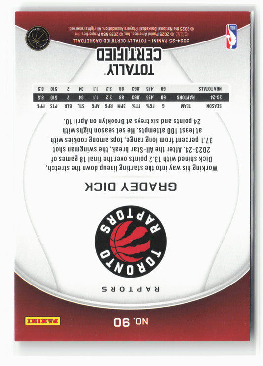 This is a nice example of a 2024-25 Panini Totally Certified #90 Gradey Dick Other important information about this card:In 2024 Gradey Dick played for the Toronto Raptors.Please check out...