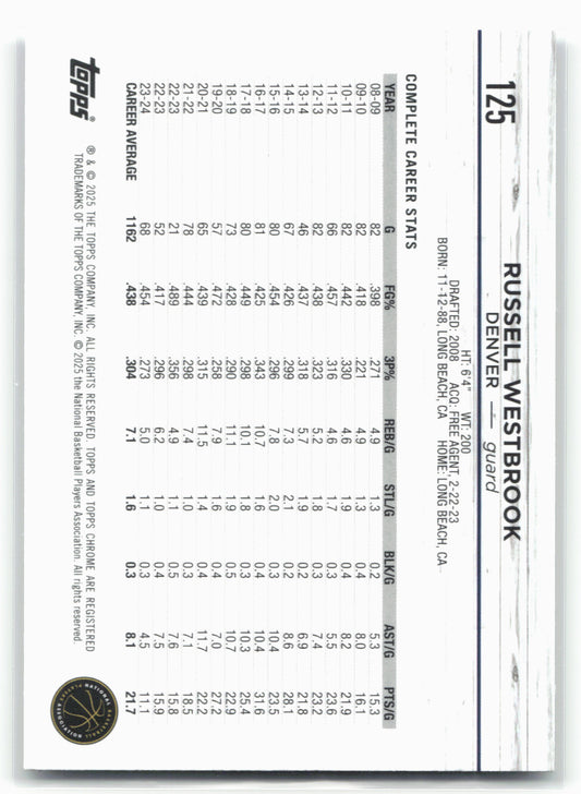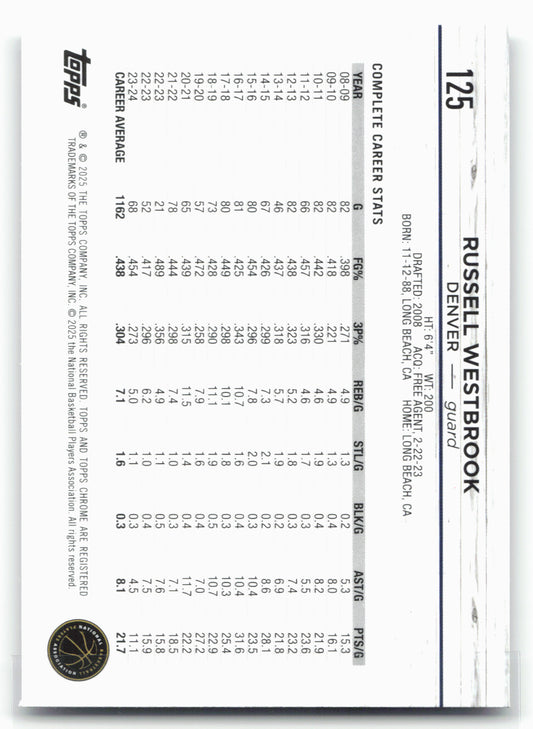 This is a nice example of a 2024-25 Topps Chrome #125 Russell Westbrook Other important information about this card:In 2024 Russell Westbrook played for the Denver Nuggets.Please check out our...