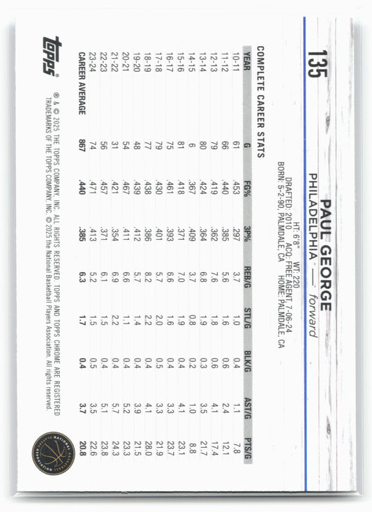 This is a nice example of a 2024-25 Topps Chrome #135 Paul George Other important information about this card:In 2024 Paul George played for the Philadelphia 76ers.Please check out our...