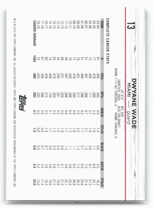 This is a nice example of a 2024-25 Topps Chrome #13 Dwyane Wade Other important information about this card:In 2024 Dwyane Wade played for the Miami Heat.Please check out our...