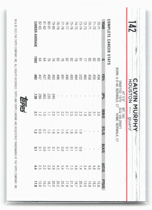 This is a nice example of a 2024-25 Topps Chrome #142 Calvin Murphy Refractor Other important information about this card:19265In 2024 Calvin Murphy played for the Houston Rockets.Please check out...