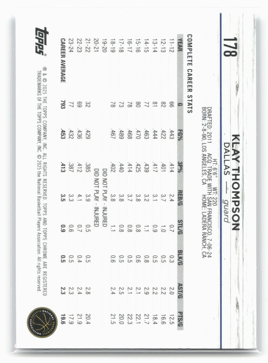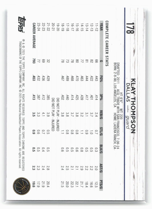 This is a nice example of a 2024-25 Topps Chrome #178 Klay Thompson Pink Refractor Other important information about this card:In 2024 Klay Thompson played for the Dallas Mavericks.Please check...