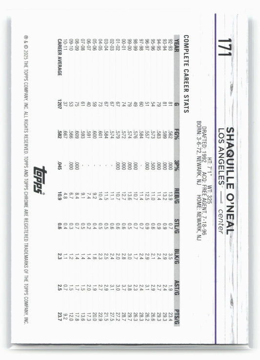 This is a nice example of a 2024-25 Topps Chrome #171 Shaquille O'Neal Refractor Other important information about this card:19270In 2024 Shaquille O'Neal played for the Los Angeles Lakers.Please check...