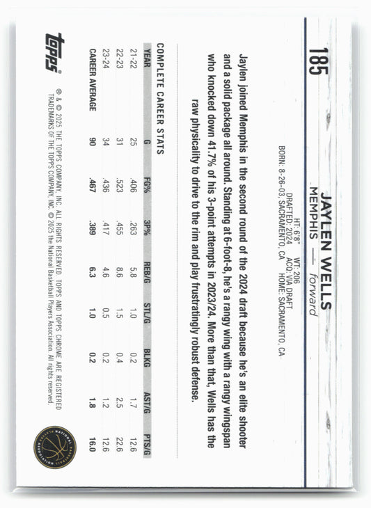 This is a nice example of a 2024-25 Topps Chrome #185 Jaylen Wells Other important information about this card:RCIn 2024 Jaylen Wells played for the Memphis Grizzlies.Please check out our...