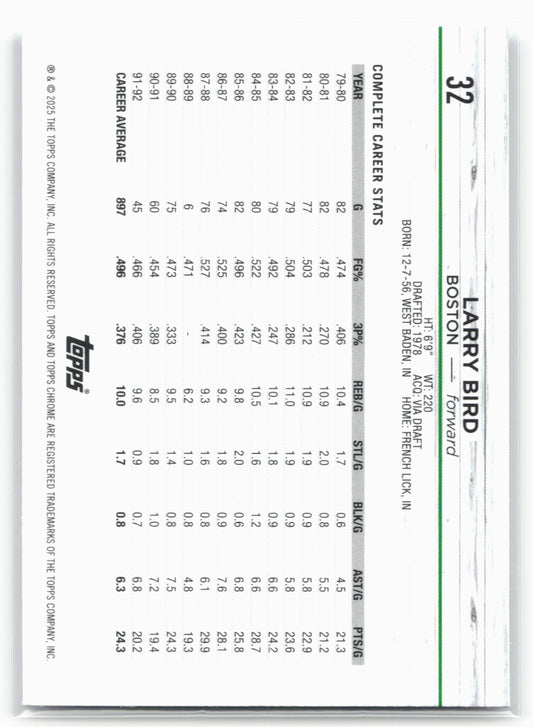 This is a nice example of a 2024-25 Topps Chrome #32 Larry Bird Other important information about this card:In 2024 Larry Bird played for the Boston Celtics.Please check out our...