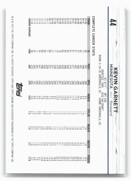 This is a nice example of a 2024-25 Topps Chrome #44 Kevin Garnett Blue Basketball Refractor Other important information about this card:19508In 2024 Kevin Garnett played for the Minnesota Timberwolves.Please...
