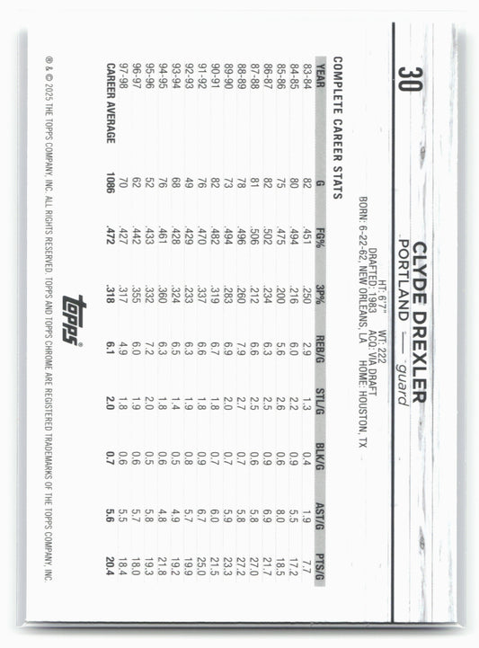 This is a nice example of a 2024-25 Topps Chrome #30 Clyde Drexler Refractor Other important information about this card:In 2024 Clyde Drexler played for the Portland Trail Blazers.Please check...