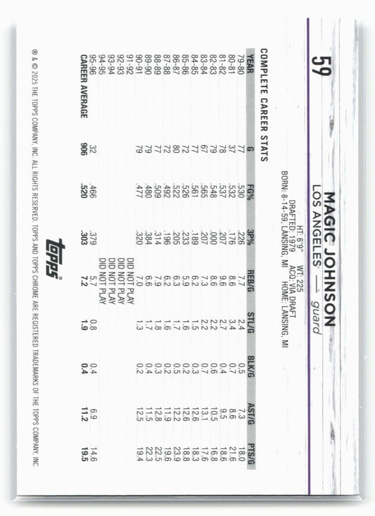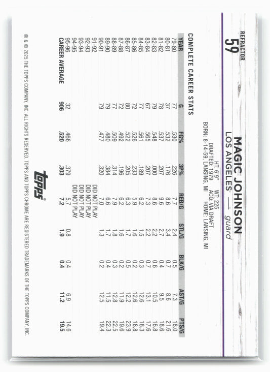 This is a nice example of a 2024-25 Topps Chrome #59 Magic Johnson Refractor Other important information about this card:In 2024 Magic Johnson played for the Los Angeles Lakers.Please check...