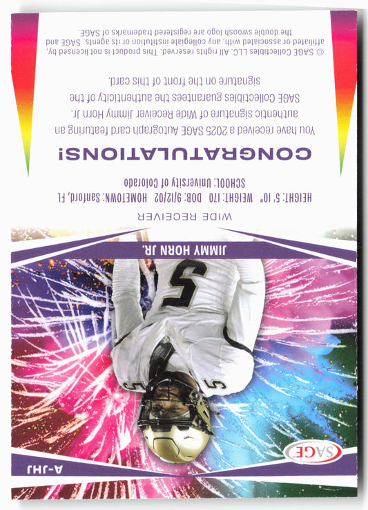 This is a nice example of a 2025 SAGE HIT Low Series #A-JHJ Jimmy Horn Jr. Autographs Red Other important information about this card:AUIn 2025 Jimmy Horn Jr. played for...