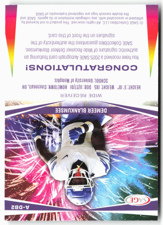 This is a nice example of a 2025 SAGE HIT Low Series #A-DB2 Demeer Blankumsee Autographs Silver Other important information about this card:AUIn 2025 Demeer Blankumsee played for the Memphis...