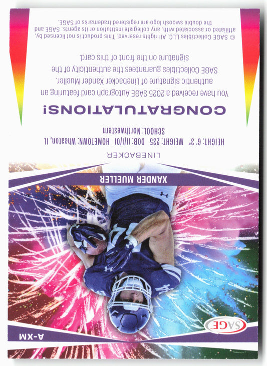 This is a nice example of a 2025 SAGE HIT Low Series #A-XM Xander Mueller Autographs Silver Other important information about this card:AUIn 2025 Xander Mueller played for the Northwestern...