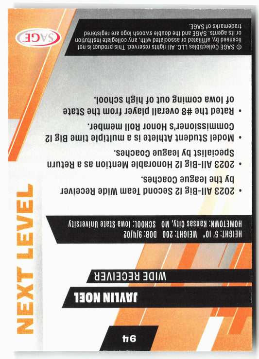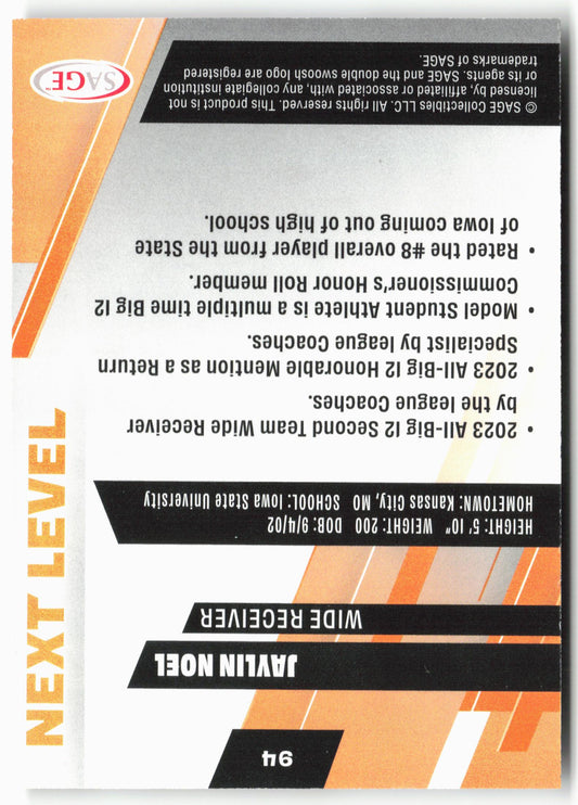 This is a nice example of a 2025 SAGE HIT Low Series #94 Jaylin Noel Other important information about this card:In 2025 Jaylin Noel played for the Iowa State Cyclones.Please...