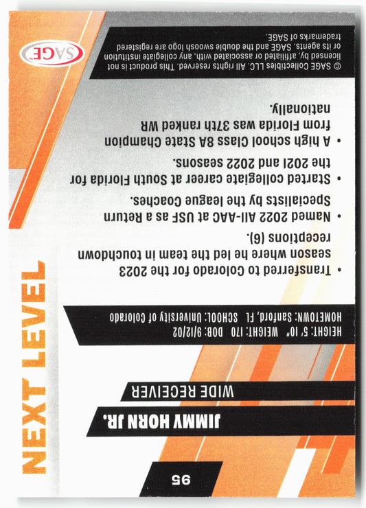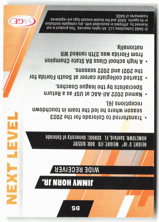 This is a nice example of a 2025 SAGE HIT Low Series #95 Jimmy Horn Jr. Other important information about this card:In 2025 Jimmy Horn Jr. played for the Colorado...