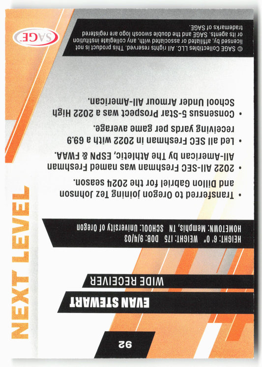This is a nice example of a 2025 SAGE HIT Low Series #92 Evan Stewart Gold Other important information about this card:In 2025 Evan Stewart played for the Oregon Ducks.Please...