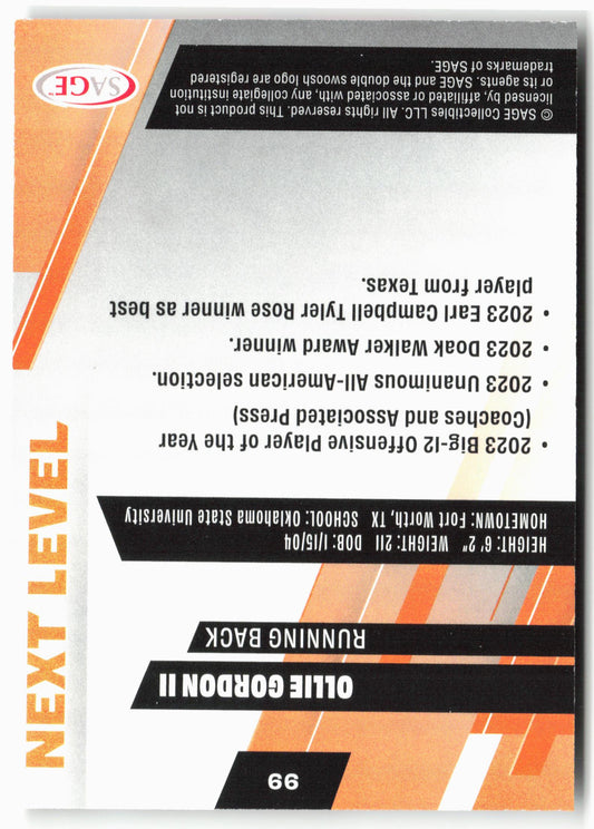 This is a nice example of a 2025 SAGE HIT Low Series #99 Ollie Gordon II Gold Other important information about this card:In 2025 Ollie Gordon II played for the...