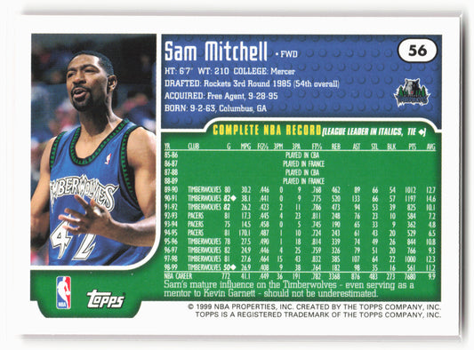 This is a nice example of a 1999-00 Topps #56 Sam Mitchell Other important information about this card:In 1999 Sam Mitchell played for the Minnesota Timberwolves.Please check out our other...