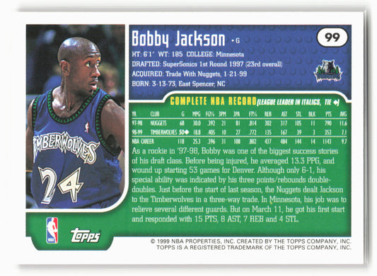 This is a nice example of a 1999-00 Topps Tipoff #99 Bobby Jackson Other important information about this card:In 1999 Bobby Jackson played for the Minnesota Timberwolves.Please check out our...