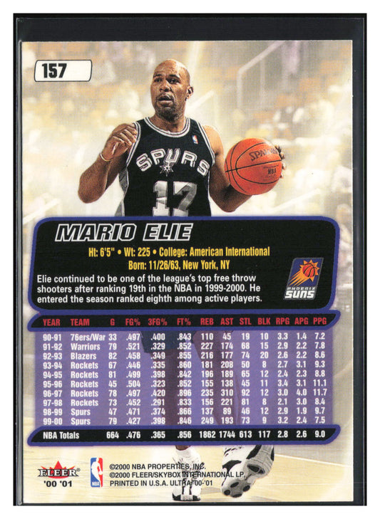 This is a nice example of a 2000-01 Ultra #157 Mario Elie Other important information about this card:In 2000 Mario Elie played for the Phoenix Suns.Please check out our other...