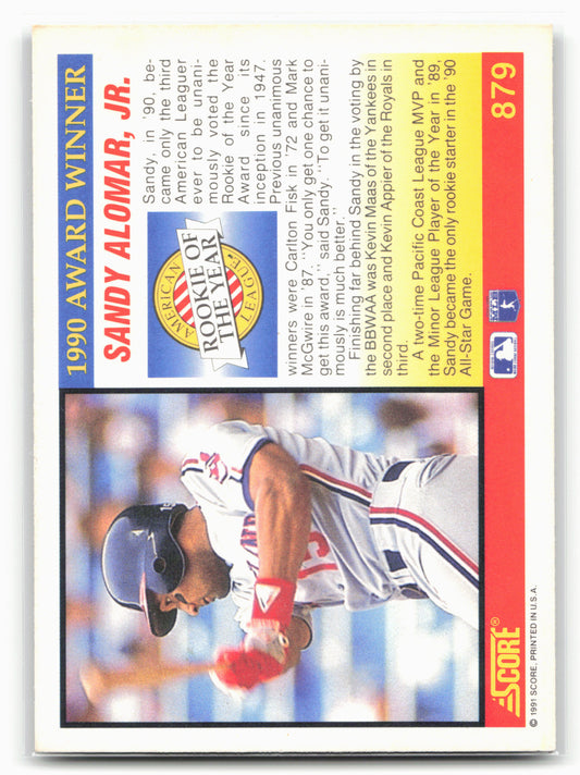 This is a nice example of a 1991 Score #879 Sandy Alomar, Jr. Other important information about this card:In 1991 Sandy Alomar, Jr. played for the Cleveland Indians.Please check out...