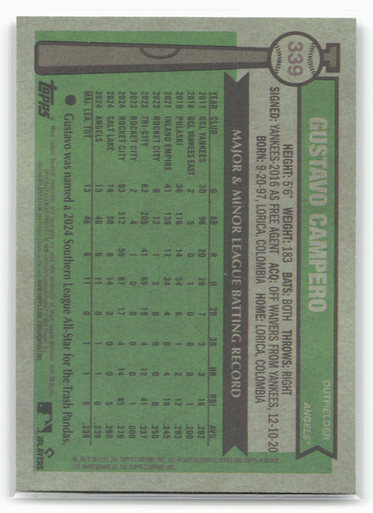 This is a nice example of a 2025 Topps Heritage #339 Gustavo Campero Chrome Silver Sparkle Refractor Other important information about this card:RCIn 2025 Gustavo Campero played for the Los...