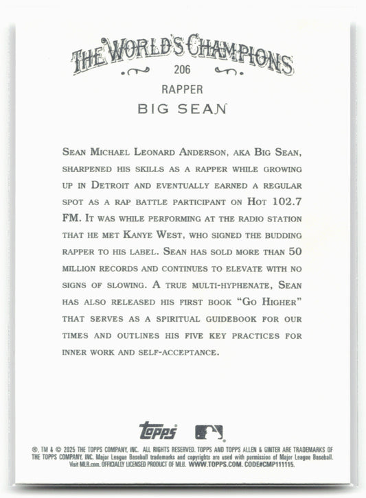 This is a nice example of a 2025 Topps Allen & Ginter #206 Big Sean Other important information about this card:In 2025 Big Sean played for the MLB.Please check out...