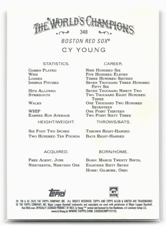 This is a nice example of a 2025 Topps Allen & Ginter #348 Cy Young Other important information about this card:In 2025 Cy Young played for the Boston Red Sox.Please...