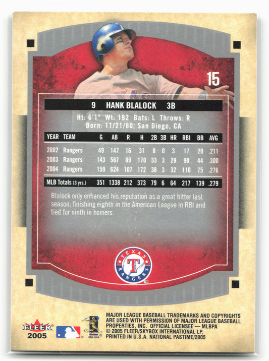 This is a nice example of a 2005 Fleer National Pastime #15 Hank Blalock Other important information about this card:In 2005 Hank Blalock played for the Texas Rangers.Please check out...