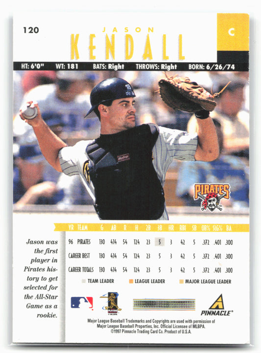 This is a nice example of a 1997 New Pinnacle #120 Jason Kendall Other important information about this card:In 1997 Jason Kendall played for the Pittsburgh Pirates.Please check out our...