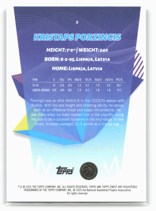 This is a nice example of a 2024-25 Finest #5 Kristaps Porzingis Other important information about this card:19901In 2024 Kristaps Porzingis played for the Boston Celtics.Please check out our other...