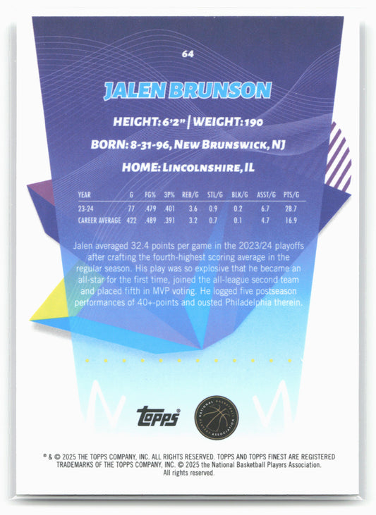 This is a nice example of a 2024-25 Finest #64 Jalen Brunson Other important information about this card:19913In 2024 Jalen Brunson played for the New York Knicks.Please check out our...