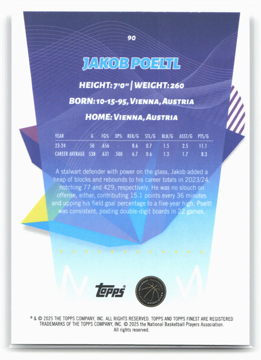 This is a nice example of a 2024-25 Finest #90 Jakob Poeltl Other important information about this card:In 2024 Jakob Poeltl played for the Toronto Raptors.Please check out our other...