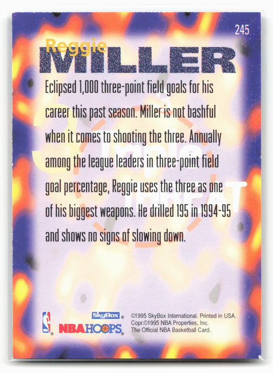 This is a nice example of a 1995-96 Hoops #245 Reggie Miller Other important information about this card:In 1995 Reggie Miller played for the Indiana Pacers.Please check out our other...