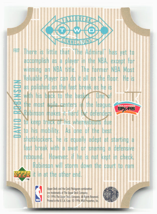 This is a nice example of a 1996-97 Upper Deck #FB17 David Robinson Fast Break Connections Other important information about this card:In 1996 David Robinson played for the San Antonio...
