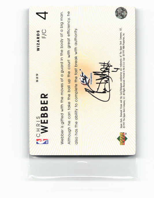 This is a nice example of a 1997-98 Upper Deck Diamond Vision #S29 Chris Webber Signature Moves Other important information about this card:In 1997 Chris Webber played for the Washington...