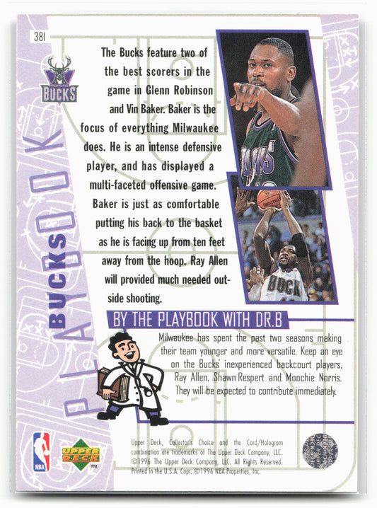This is a nice example of a 1996-97 Collector's Choice #381 Bucks Playbook Other important information about this card:In 1996 Bucks Playbook played for the Milwaukee Bucks.Please check out our...