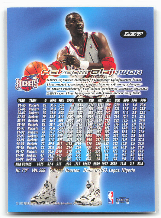 This is a nice example of a 1999-00 Ultra #107 Hakeem Olajuwon Other important information about this card:In 1999 Hakeem Olajuwon played for the Houston Rockets.Please check out our other...