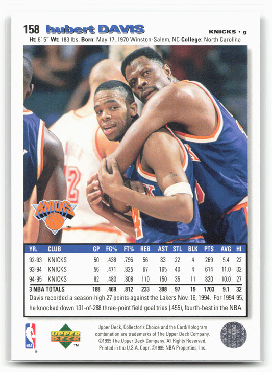 This is a nice example of a 1995-96 Collector's Choice #158 Hubert Davis Player's Club Other important information about this card:In 1995 Hubert Davis played for the New York Knicks.Please...