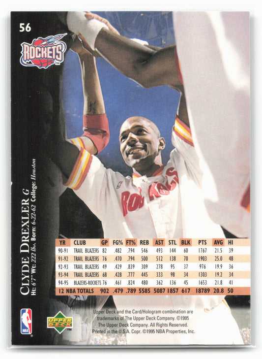 This is a nice example of a 1995-96 Upper Deck #56 Clyde Drexler Other important information about this card:In 1995 Clyde Drexler played for the Houston Rockets.Please check out our...