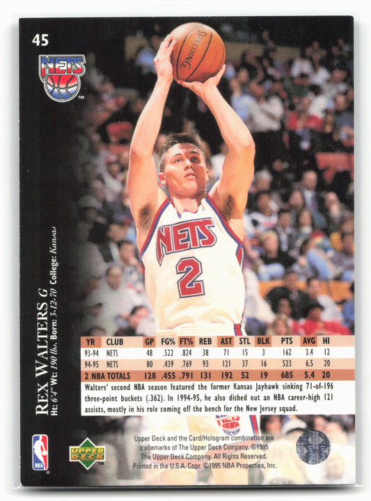 This is a nice example of a 1995-96 Upper Deck #45 Rex Walters Electric Court Other important information about this card:In 1995 Rex Walters played for the New Jersey Nets.Please...