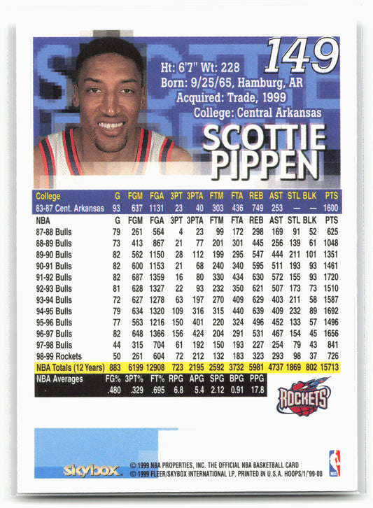This is a nice example of a 1999-00 Hoops #149 Scottie Pippen Other important information about this card:In 1999 Scottie Pippen played for the Houston Rockets.Please check out our other...