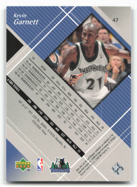 This is a nice example of a 1999-00 Upper Deck Black Diamond #47 Kevin Garnett Other important information about this card:In 1999 Kevin Garnett played for the Minnesota Timberwolves.Please check...