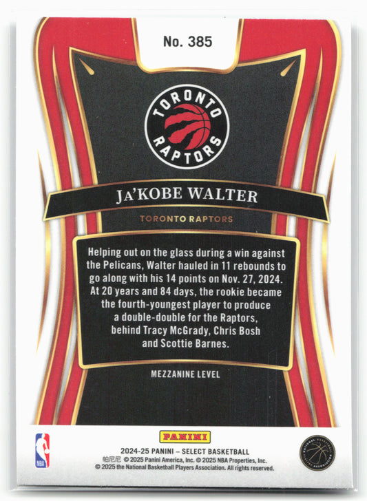 This is a nice example of a 2024-25 Panini Select #385 Ja'Kobe Walter Other important information about this card:RCIn 2024 Ja'Kobe Walter played for the Toronto Raptors.Please check out our...