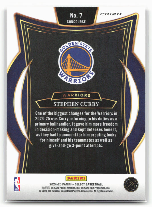 This is a nice example of a 2024-25 Panini Select #7 Stephen Curry Red Cracked Ice Prizm Other important information about this card:In 2024 Stephen Curry played for the Golden...