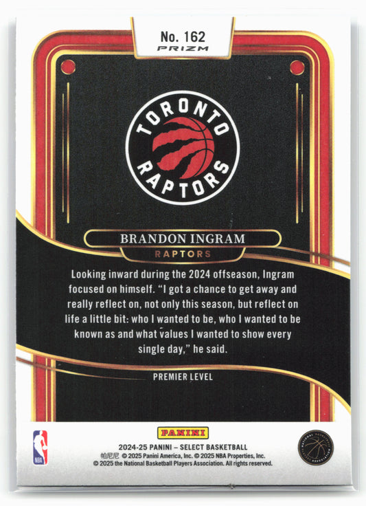 This is a nice example of a 2024-25 Panini Select #162 Brandon Ingram Blue Prizm Other important information about this card:In 2024 Brandon Ingram played for the Toronto Raptors.Please check...