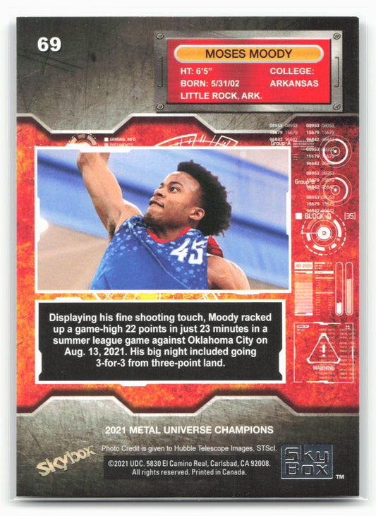 This is a nice example of a 2021 SkyBox Metal Universe Champions #69 Moses Moody Other important information about this card:In 2021 Moses Moody played for the Skybox.Please check out...