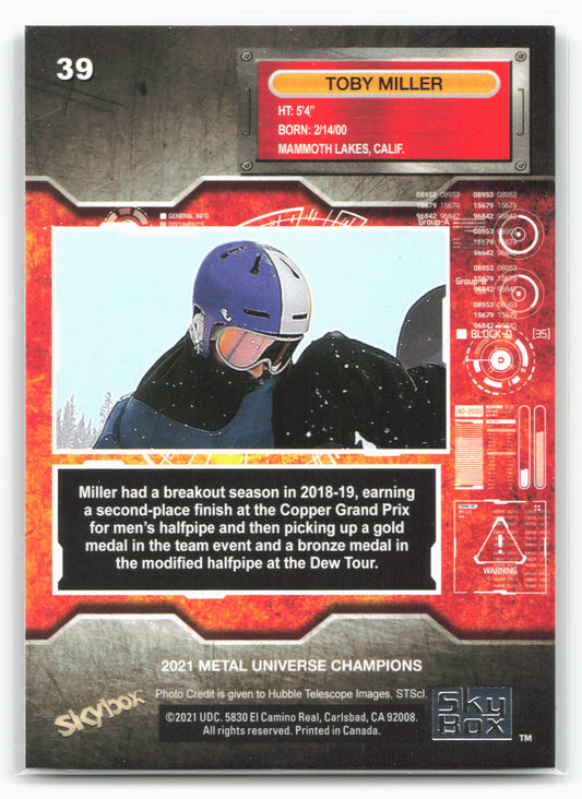 This is a nice example of a 2021 SkyBox Metal Universe Champions #39 Toby Miller Other important information about this card:In 2021 Toby Miller played for the Skybox.Please check out...