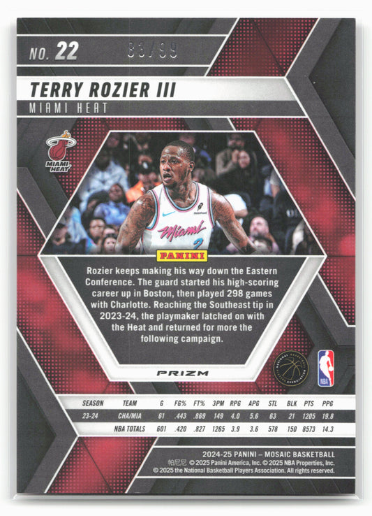 This is a nice example of a 2024-25 Panini Mosaic #22 Terry Rozier III Montage Fast Break Red Other important information about this card:SNIn 2024 Terry Rozier III played for...