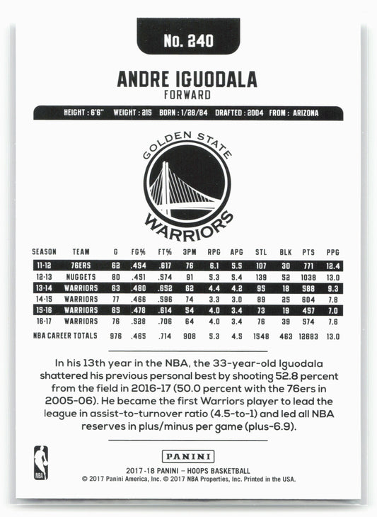 This is a nice example of a 2017-18 Hoops #240 Andre Iguodala Other important information about this card:In 2017 Andre Iguodala played for the Golden State Warriors.Please check out our...